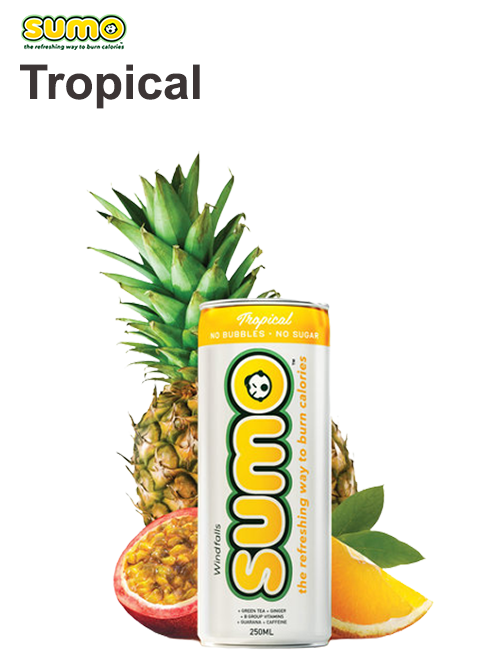 SUMO has just enough caffeine to give you an energy boost, but is not ‘overloaded’. Each 250ml can delivers 40mg of caffeine, which is half the amount found in most 250ml energy drinks.